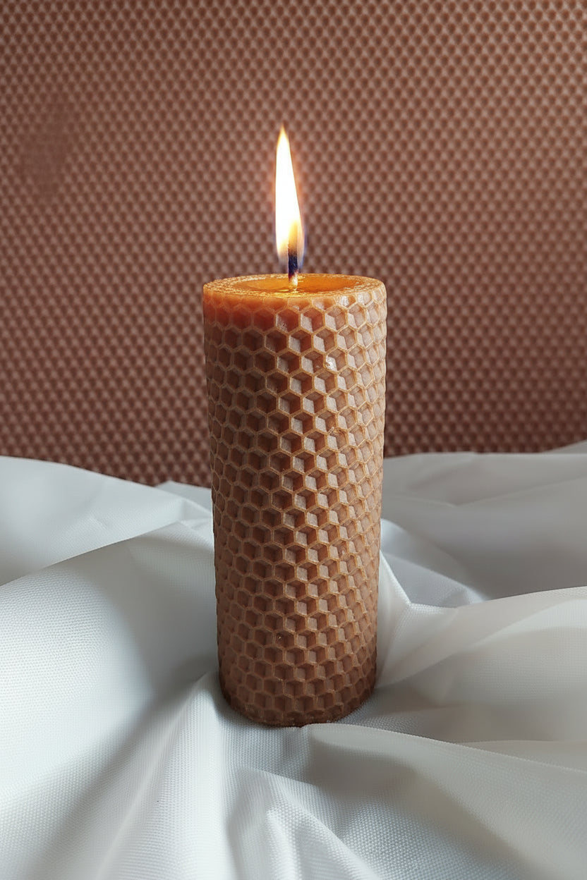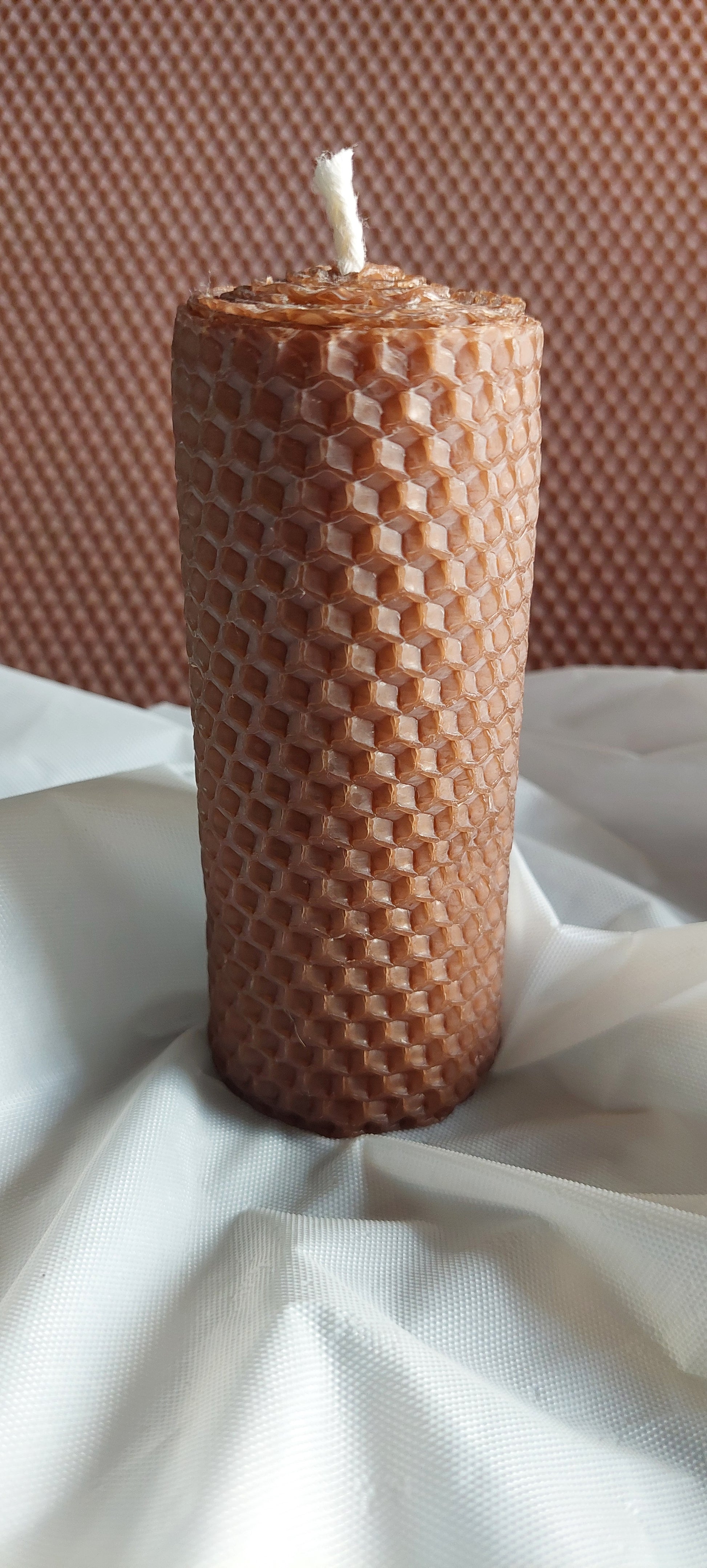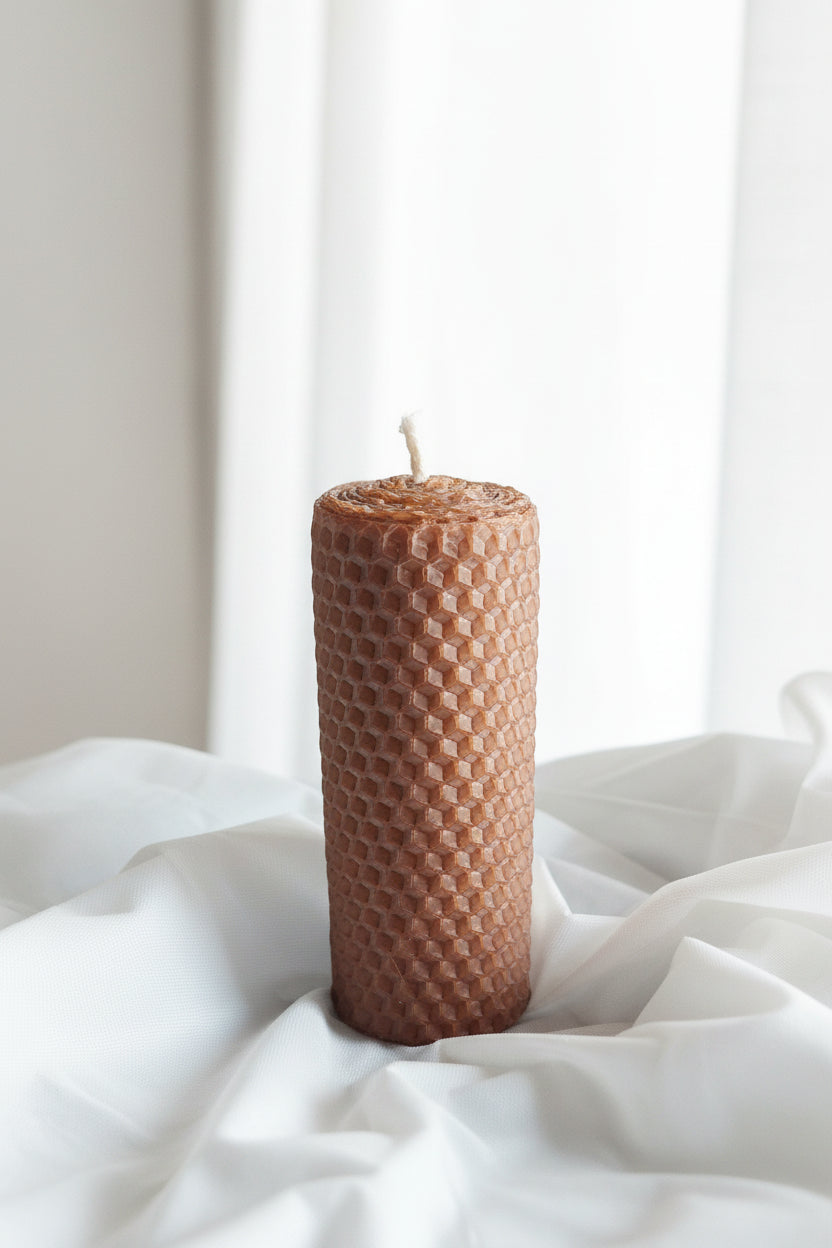 Kynttilä on valmistettu mehiläisvahasta ja tehty käsin Suomessa. Sen hunajainen sävyttää ja tekee jokaisesta kynttilästä hieman yksilöllisen.
