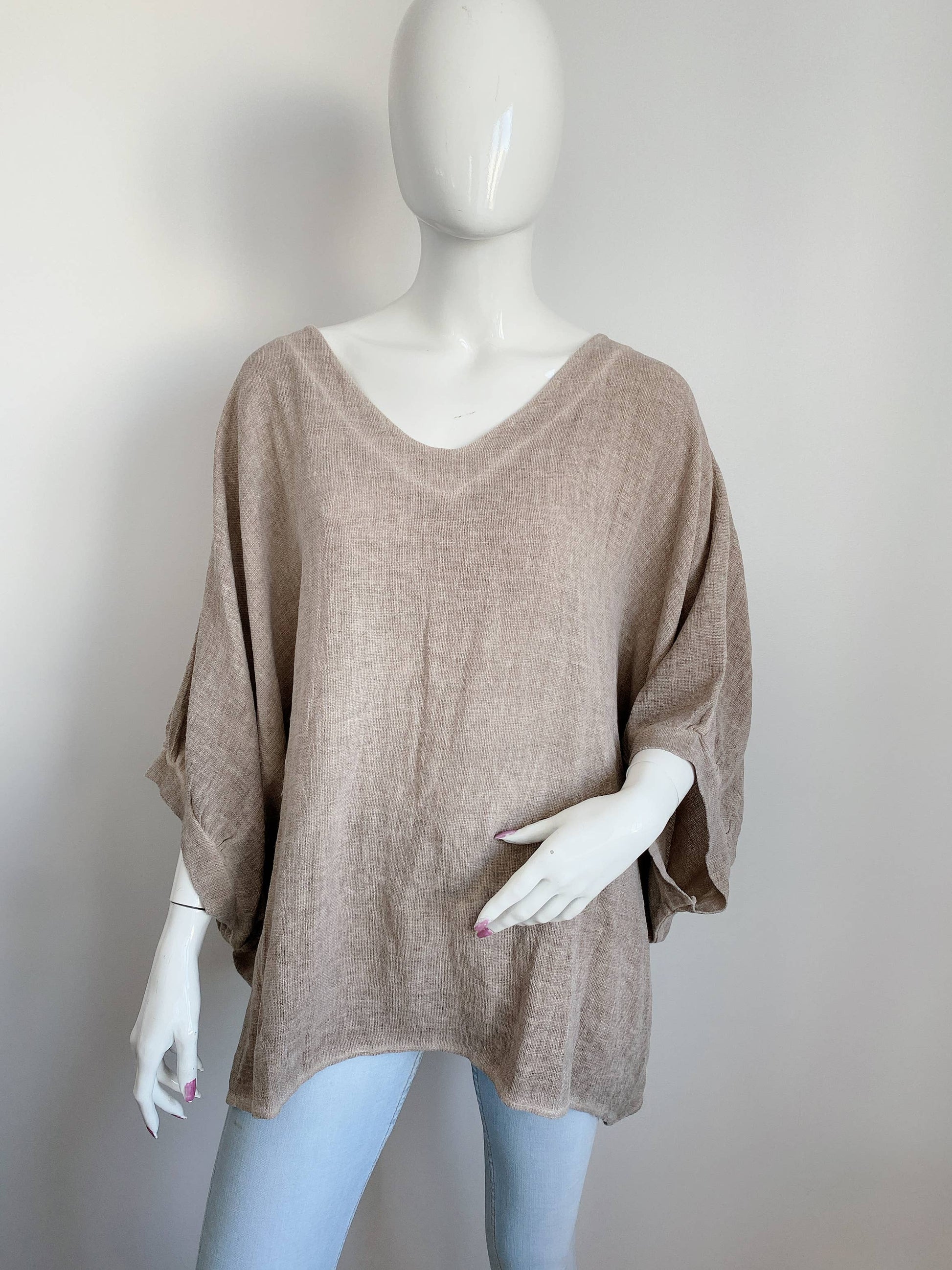 Ylisuuri pellavapaita – luonnonbeige, 100 % pellavaa, yksi koko (36–50)